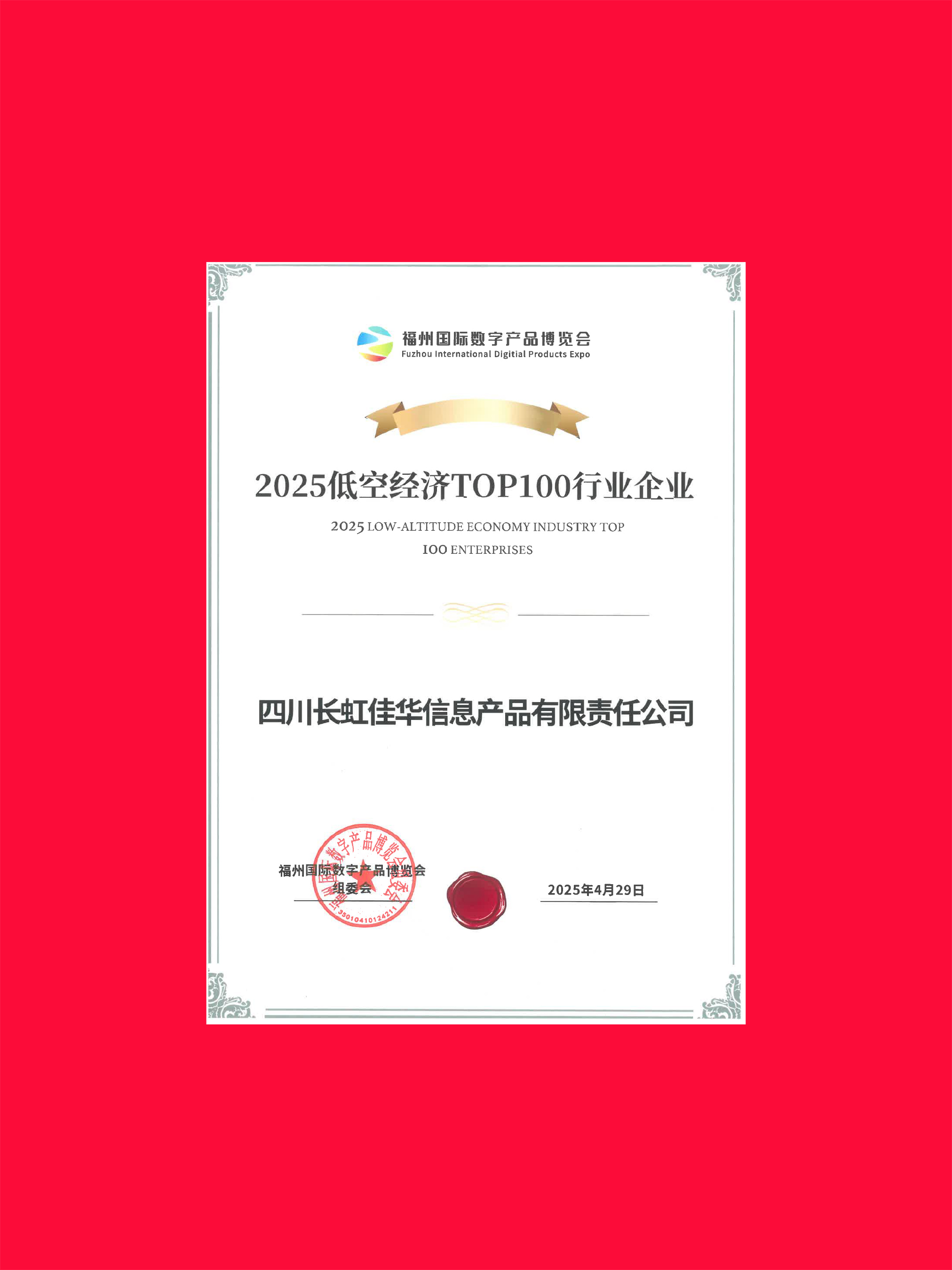 2025年獲得由福州國際數(shù)字產(chǎn)品博覽會組委會頒發(fā)的2025低空經(jīng)濟(jì)TOP100行業(yè)企業(yè)