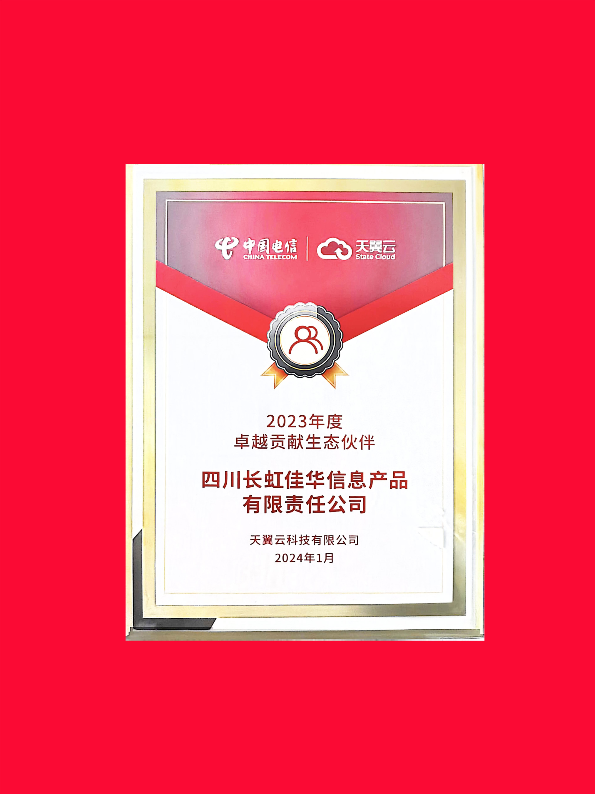 2024年獲得由天翼雲(yún)科技有限公司頒發(fā)的2023年度卓越貢獻(xiàn)生態(tài)夥伴獎