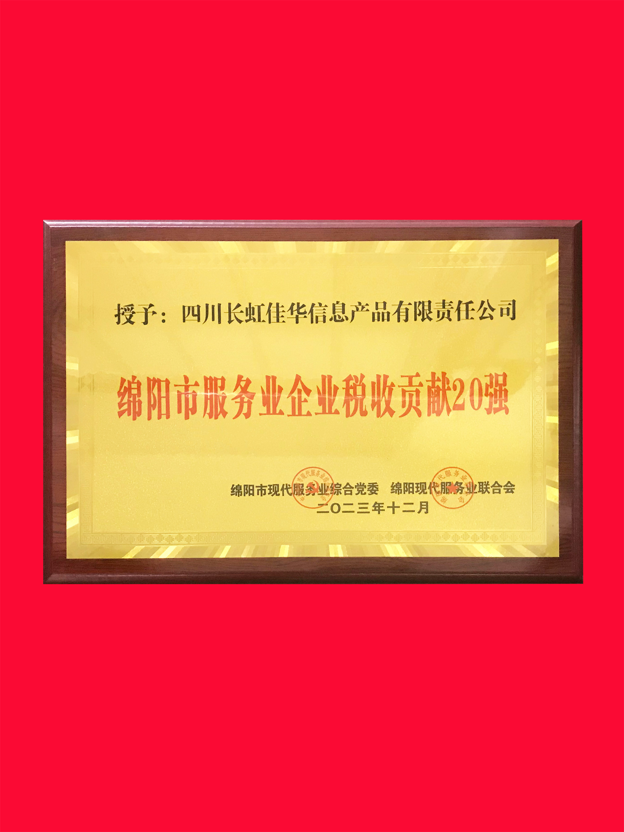 2024年獲得由綿陽市現(xiàn)代服務(wù)業(yè)綜合黨委、綿陽現(xiàn)代服務(wù)業(yè)聯(lián)合會頒發(fā)的綿陽市服務(wù)業(yè)企業(yè)稅收貢獻(xiàn)20強(qiáng)
