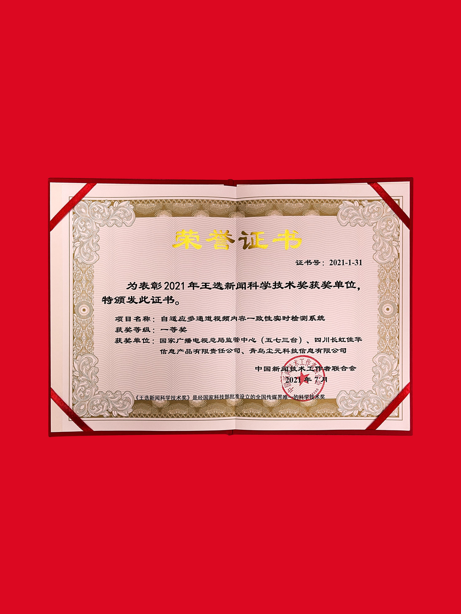 2021年獲得由中國新聞技聯(lián)頒發(fā)的「王選新聞科學(xué)技術(shù)獎」一等獎