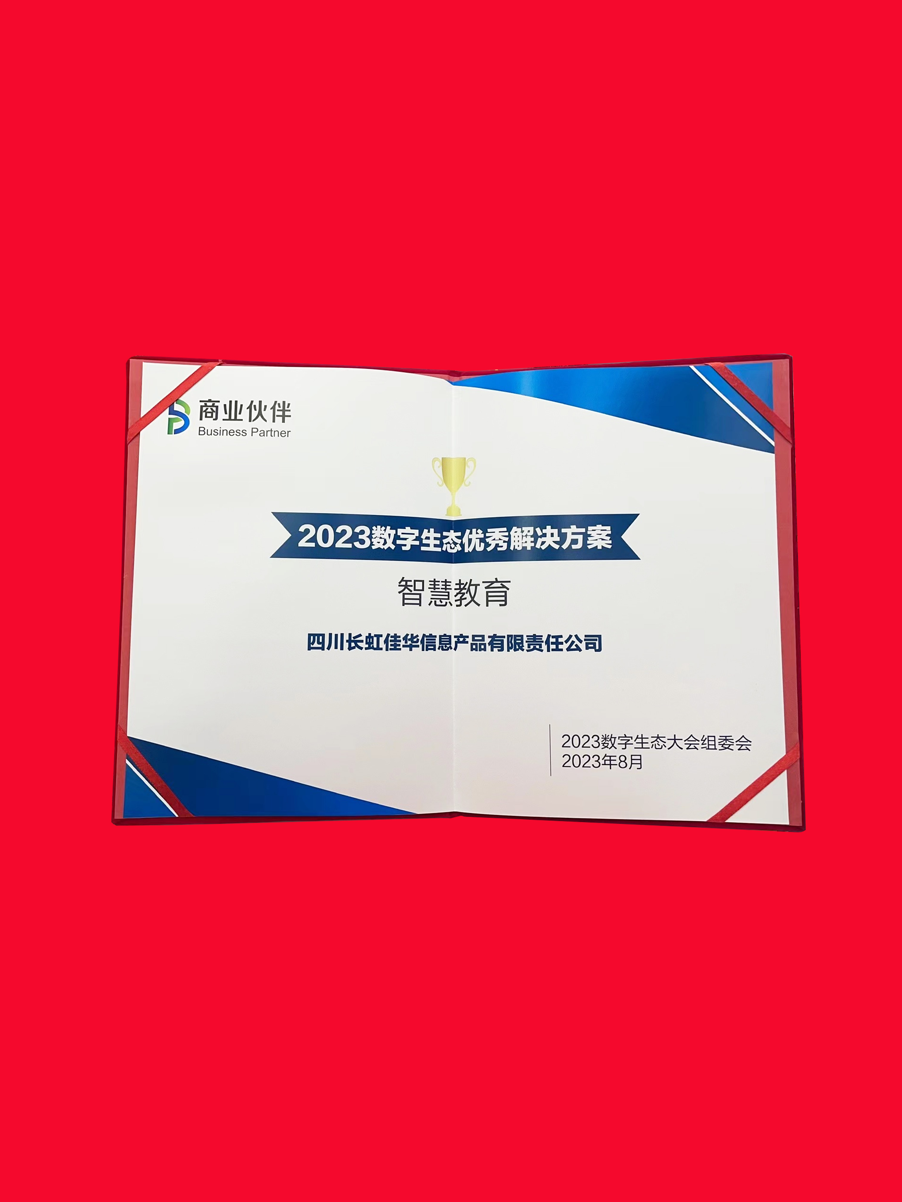 2023年獲得由BP商業(yè)夥伴頒發(fā)的2023數(shù)字生態(tài)優(yōu)秀解決方案(智慧教育)