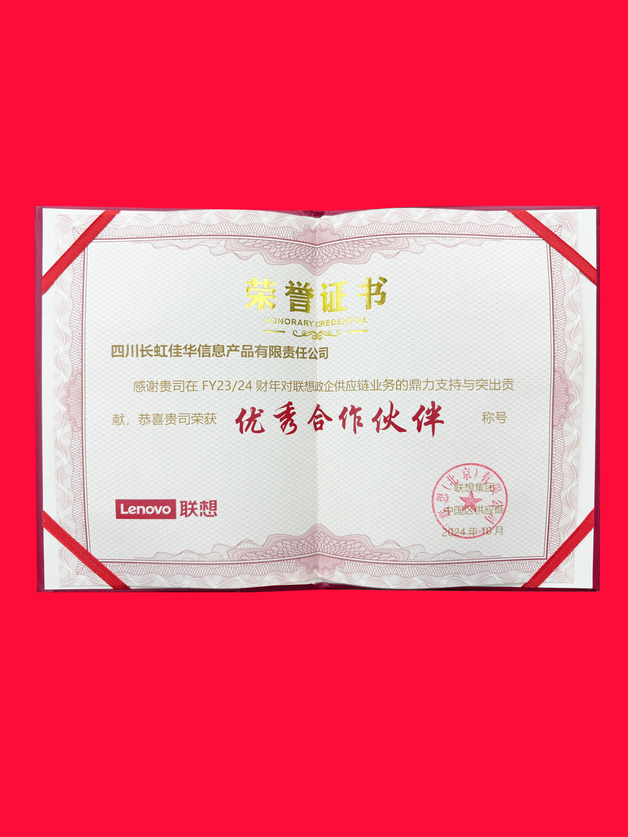 2024年獲得由聯(lián)想頒發(fā)的優(yōu)秀合作伙伴獎