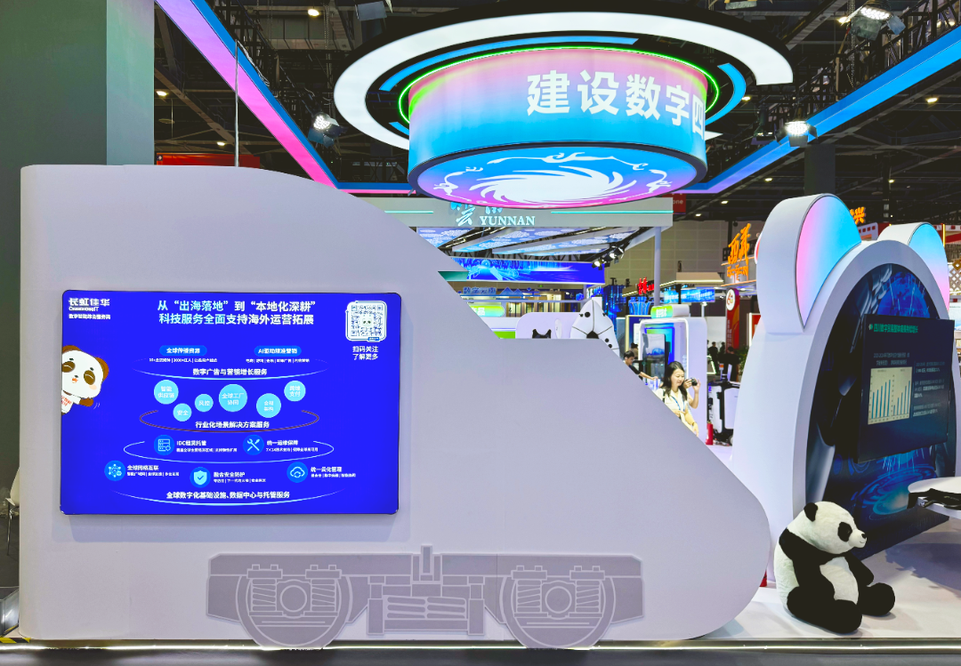 伴隨“數(shù)字貿(mào)易”連續(xù)兩年被寫入政府工作報告併成爲(wèi)外貿(mào)新增長點之一,出海企業(yè)正經(jīng)歷從“借船出?!钡健白越芰Α钡目缭?。在數(shù)貿(mào)會“絲路電商”展區(qū)四川館,一面3×2米的顯示屏吸引了衆(zhòng)多目光——長虹佳華賦能企業(yè)出海的全景數(shù)智方案藍(lán)圖,於此生動展開,躍然眼前。