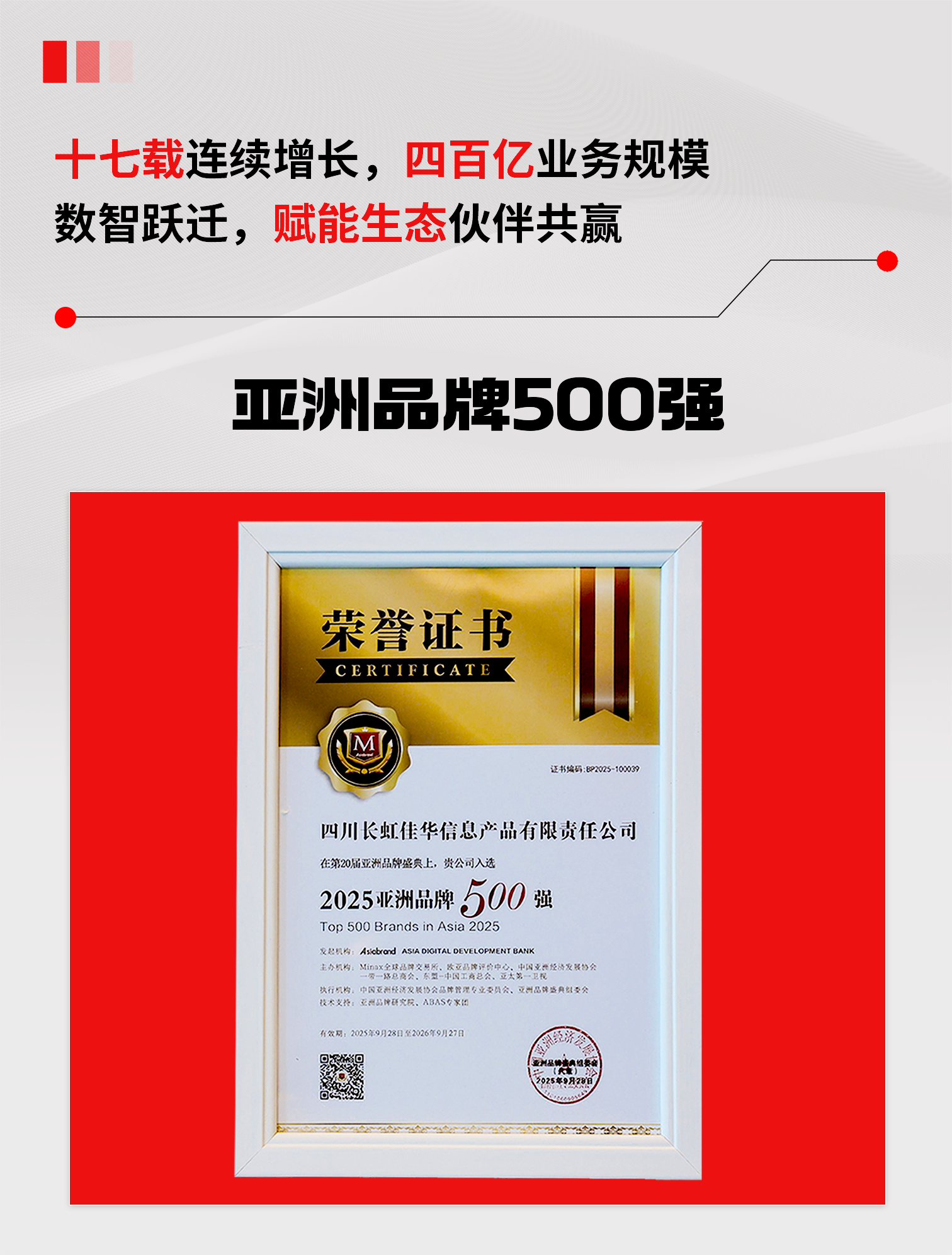 本次盛典,長虹佳華榮登“2025亞洲品牌500強(qiáng)”,排名第270位,較去年提升6位;同時(shí)獲評“2025中國ICT生態(tài)十大影響力品牌”,品牌影響力和生態(tài)價(jià)值獲權(quán)威體系強(qiáng)力背書。