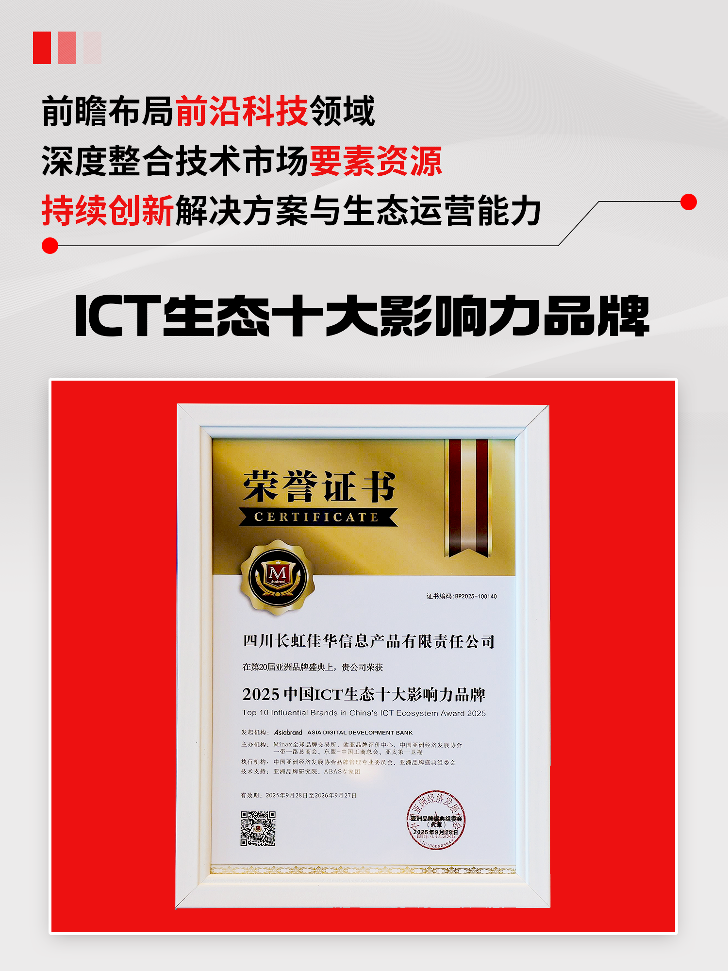 本次盛典,長虹佳華榮登“2025亞洲品牌500強(qiáng)”,排名第270位,較去年提升6位;同時(shí)獲評“2025中國ICT生態(tài)十大影響力品牌”,品牌影響力和生態(tài)價(jià)值獲權(quán)威體系強(qiáng)力背書。